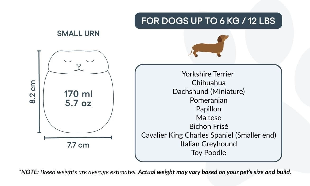 Create a lasting tribute to your beloved dog with this Personalised Ceramic Pet Urn with Sleeping Dog Lid, designed with a peaceful sleeping pet lid to honour your companion’s memory. This cremation urn allows you to personalise your dog’s name and life dates—transforming it into a heartfelt keepsake and pet memorial.
