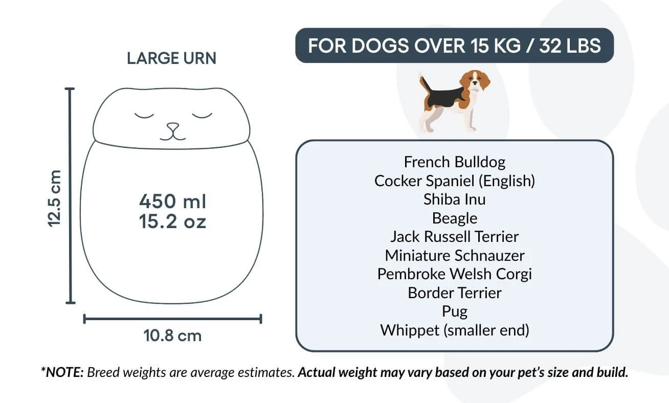 Ideal for pet cremation, ashes, and indoor memorial use, this keepsake urn helps preserve cherished memories. It’s more than a casket—it’s a personalised pet urn that tells your dog’s story with dignity.