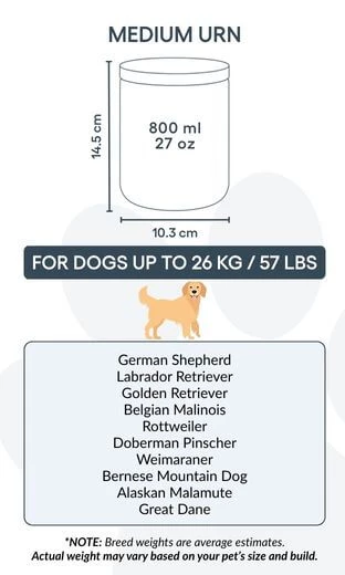Perfect for pet cremation, this ceramic urn is available in two sizes to suit dogs up to 26kg. Whether displayed on a shelf or tucked into a private memory spot, this urn with photo is a respectful way to keep your companion close.