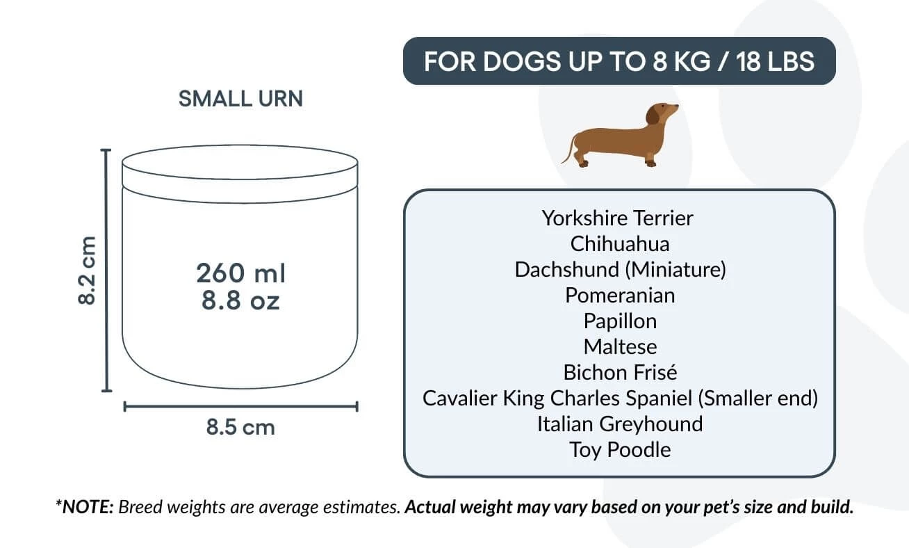 Perfect for pet cremation and remembrance, this ceramic pet urn is available in two sizes for dogs up to 26kg. Whether placed on a shelf, mantle, or memorial table, this urn is more than a container—it’s a heartfelt tribute to a loyal companion.