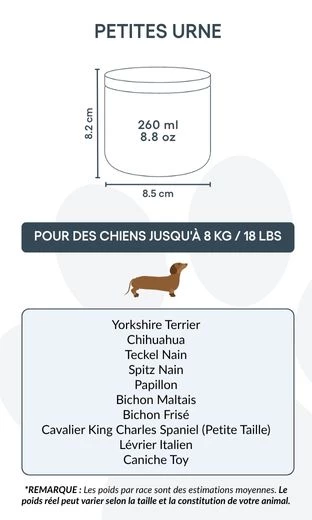 Small: 8.5 cm (W) x 8.2 cm (H) x 8.5 cm (L) | 260ml / 8.8oz |for dogs up to 8kg / 18lbs
