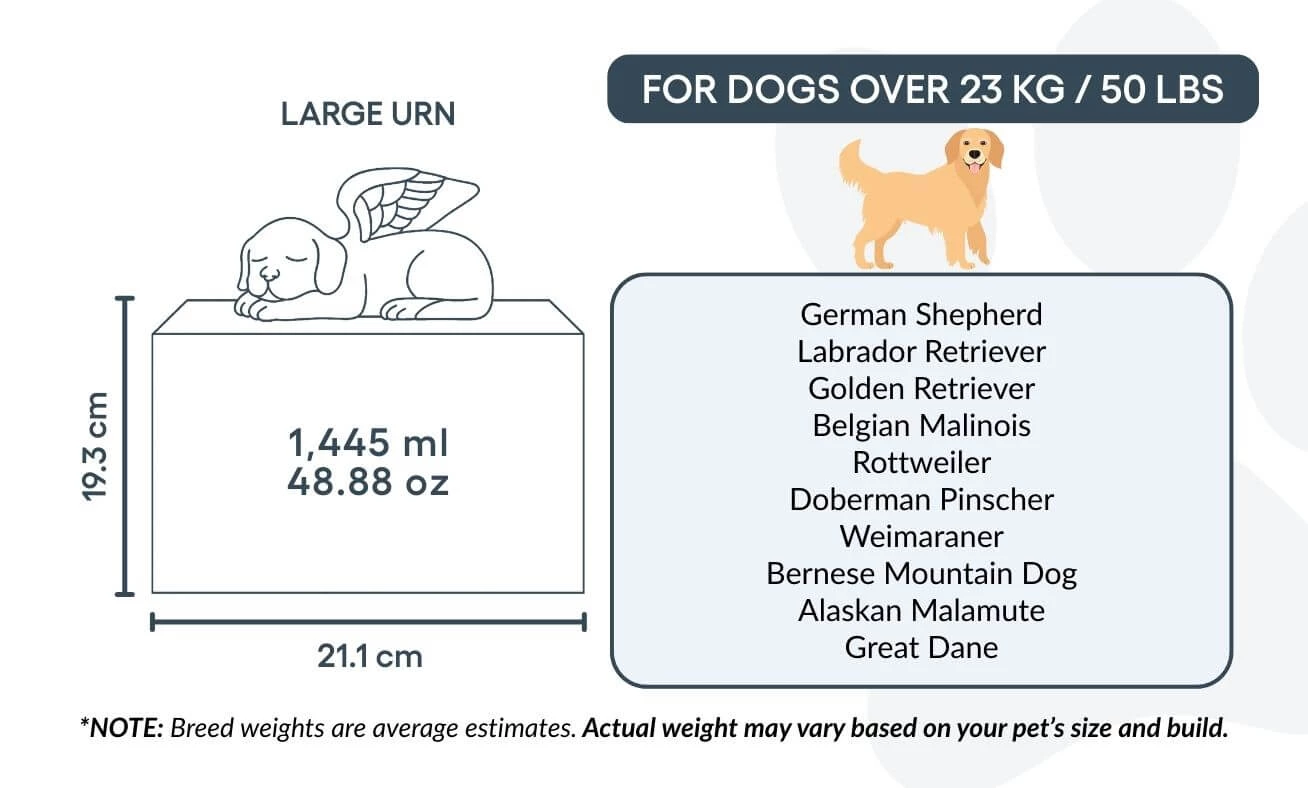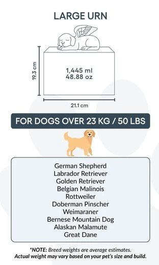 Personalised Wooden Dog Urn Box with Angel Dog Statue –  Pet Cremation Urn for Ashes with Photo, Name, Dates & Tribute